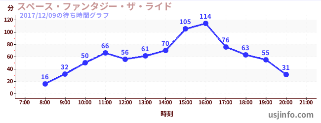 • スペース・ファンタジー・ザ・ライド$B$N(B2017年12月09日の待ち時間