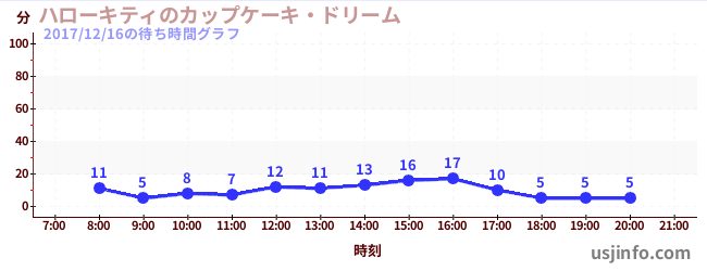 • ハローキティのカップケーキ・ドリーム$B$N(B2017年12月16日の待ち時間