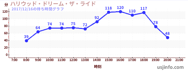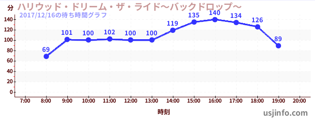 • ハリウッド・ドリーム・ザ・ライド〜バックドロップ〜$B$N(B2017年12月16日の待ち時間