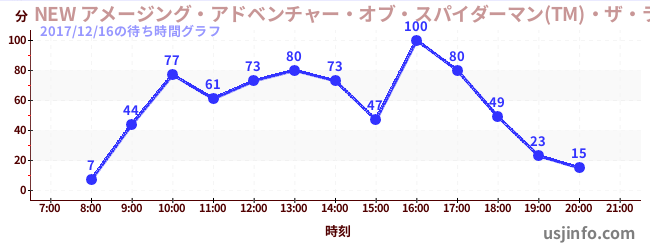 • NEW アメージング・アドベンチャー・オブ・スパイダーマン(TM)・ザ・ライド 4K3D$B$N(B2017年12月16日の待ち時間