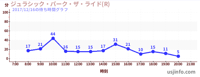 • ジュラシック・パーク・ザ・ライド(R)$B$N(B2017年12月16日の待ち時間