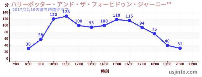 • ハリーポッター・アンド・ザ・フォービドゥン・ジャーニー™$B$N(B2017年12月16日の待ち時間