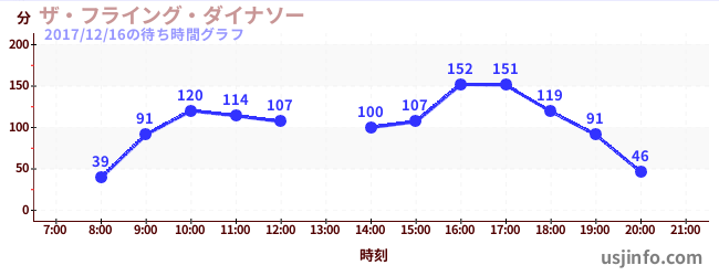 • ザ・フライング・ダイナソー$B$N(B2017年12月16日の待ち時間