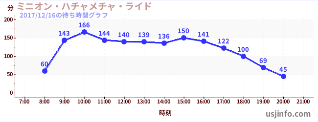 • ミニオン・ハチャメチャ・ライド$B$N(B2017年12月16日の待ち時間