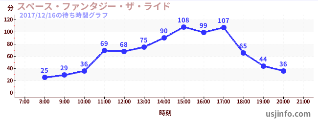 • スペース・ファンタジー・ザ・ライド$B$N(B2017年12月16日の待ち時間