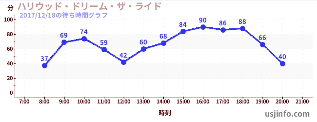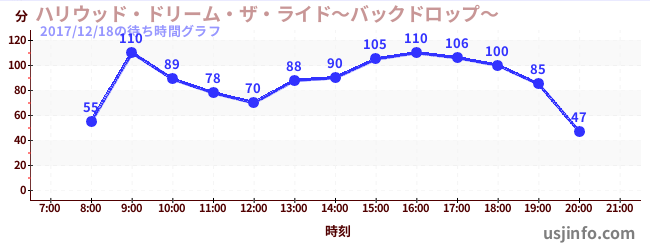 • ハリウッド・ドリーム・ザ・ライド〜バックドロップ〜$B$N(B2017年12月18日の待ち時間