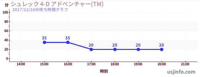 • シュレック 4-D アドベンチャー(TM)$B$N(B2017年12月18日の待ち時間