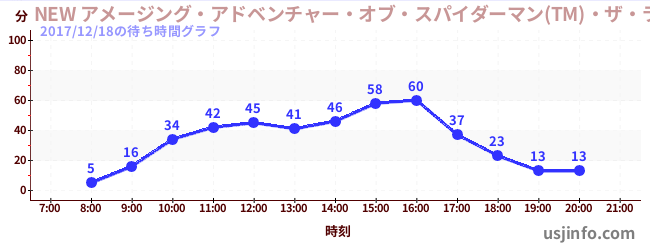 • NEW アメージング・アドベンチャー・オブ・スパイダーマン(TM)・ザ・ライド 4K3D$B$N(B2017年12月18日の待ち時間