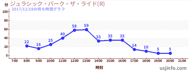 • ジュラシック・パーク・ザ・ライド(R)$B$N(B2017年12月18日の待ち時間