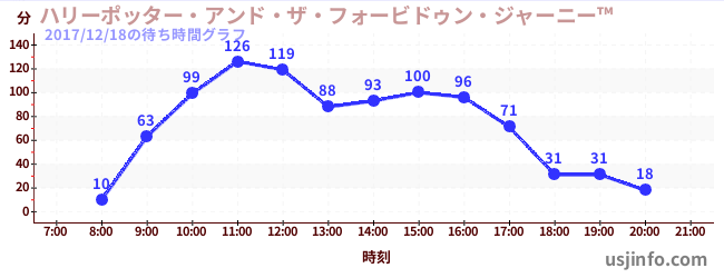 • ハリーポッター・アンド・ザ・フォービドゥン・ジャーニー™$B$N(B2017年12月18日の待ち時間