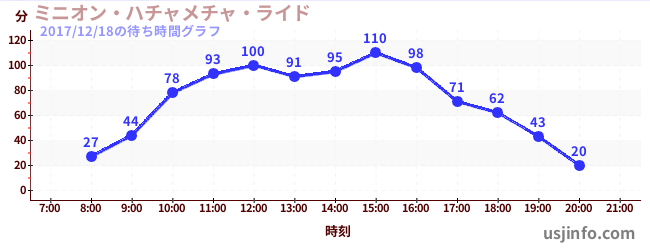• ミニオン・ハチャメチャ・ライド$B$N(B2017年12月18日の待ち時間