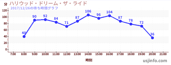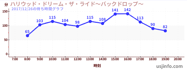 • ハリウッド・ドリーム・ザ・ライド〜バックドロップ〜$B$N(B2017年12月26日の待ち時間