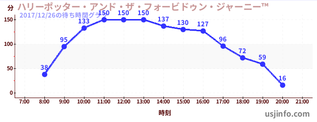 • ハリーポッター・アンド・ザ・フォービドゥン・ジャーニー™$B$N(B2017年12月26日の待ち時間