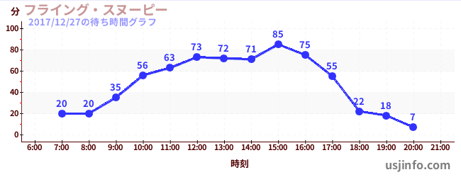 • フライング・スヌーピー$B$N(B2017年12月27日の待ち時間