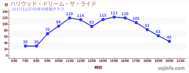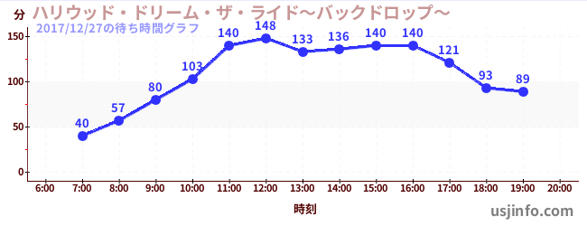• ハリウッド・ドリーム・ザ・ライド〜バックドロップ〜$B$N(B2017年12月27日の待ち時間