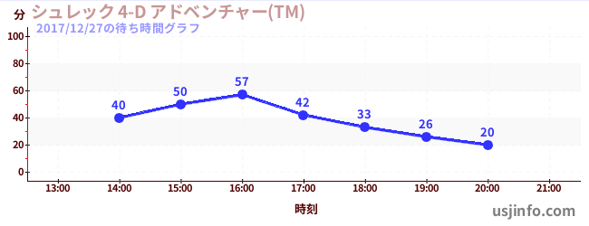 • シュレック 4-D アドベンチャー(TM)$B$N(B2017年12月27日の待ち時間