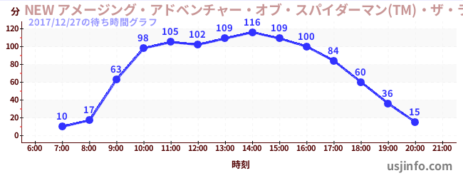 • NEW アメージング・アドベンチャー・オブ・スパイダーマン(TM)・ザ・ライド 4K3D$B$N(B2017年12月27日の待ち時間