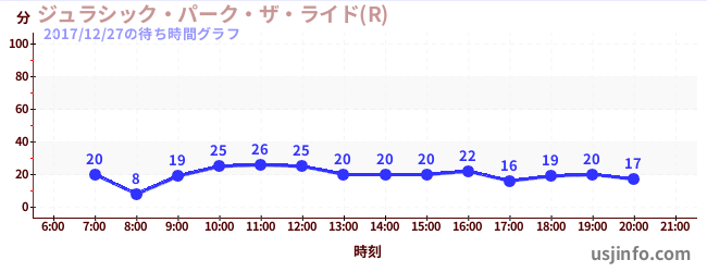 • ジュラシック・パーク・ザ・ライド(R)$B$N(B2017年12月27日の待ち時間