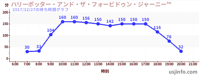• ハリーポッター・アンド・ザ・フォービドゥン・ジャーニー™$B$N(B2017年12月27日の待ち時間