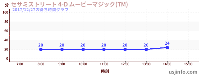 • セサミストリート 4-D ムービーマジック(TM)$B$N(B2017年12月27日の待ち時間