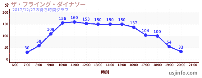 • ザ・フライング・ダイナソー$B$N(B2017年12月27日の待ち時間