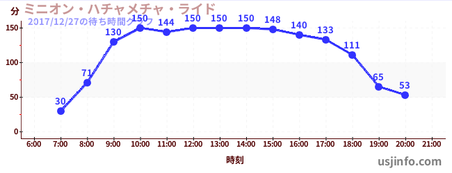 • ミニオン・ハチャメチャ・ライド$B$N(B2017年12月27日の待ち時間