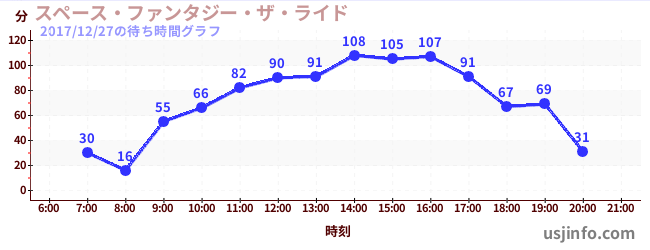 • スペース・ファンタジー・ザ・ライド$B$N(B2017年12月27日の待ち時間