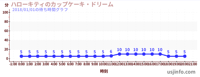 • ハローキティのカップケーキ・ドリーム$B$N(B2018年01月01日の待ち時間