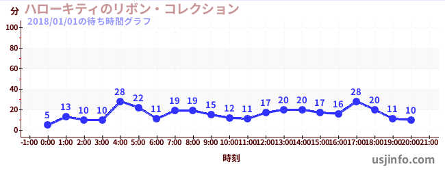 • ハローキティのリボン・コレクション$B$N(B2018年01月01日の待ち時間
