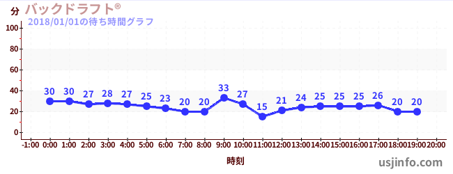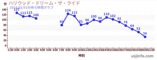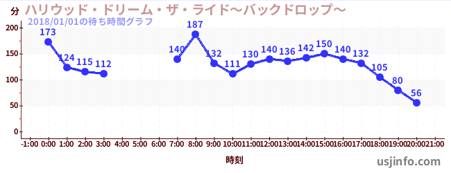 • ハリウッド・ドリーム・ザ・ライド〜バックドロップ〜$B$N(B2018年01月01日の待ち時間