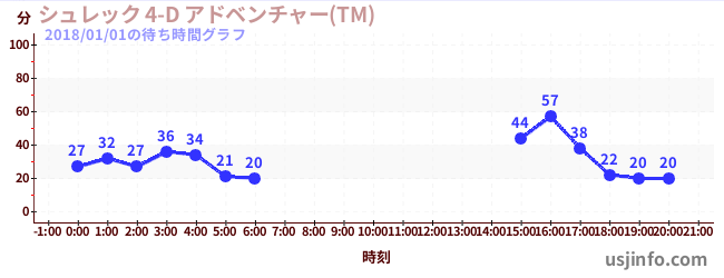 • シュレック 4-D アドベンチャー(TM)$B$N(B2018年01月01日の待ち時間