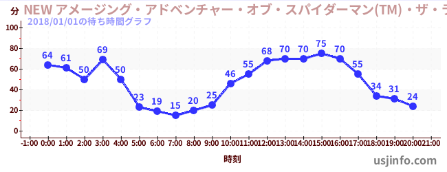 • NEW アメージング・アドベンチャー・オブ・スパイダーマン(TM)・ザ・ライド 4K3D$B$N(B2018年01月01日の待ち時間