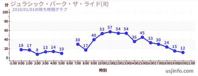 • ジュラシック・パーク・ザ・ライド(R)$B$N(B2018年01月01日の待ち時間