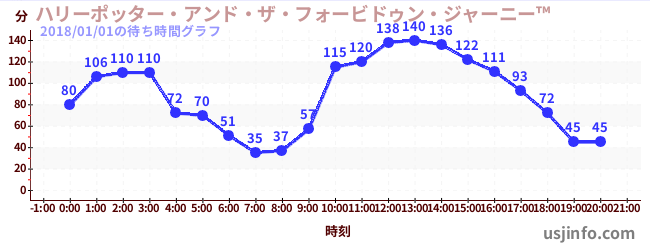 • ハリーポッター・アンド・ザ・フォービドゥン・ジャーニー™$B$N(B2018年01月01日の待ち時間