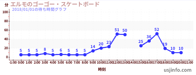 • エルモのゴーゴー・スケートボード$B$N(B2018年01月01日の待ち時間