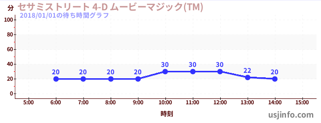 • セサミストリート 4-D ムービーマジック(TM)$B$N(B2018年01月01日の待ち時間
