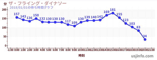 • ザ・フライング・ダイナソー$B$N(B2018年01月01日の待ち時間