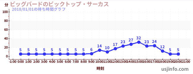 • ビッグバードのビックトップ・サーカス$B$N(B2018年01月01日の待ち時間