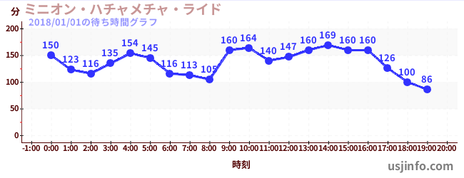 • ミニオン・ハチャメチャ・ライド$B$N(B2018年01月01日の待ち時間