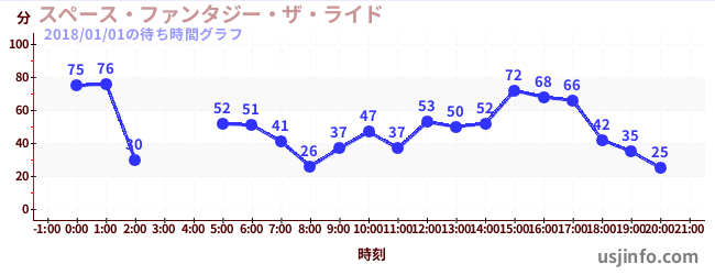 • スペース・ファンタジー・ザ・ライド$B$N(B2018年01月01日の待ち時間