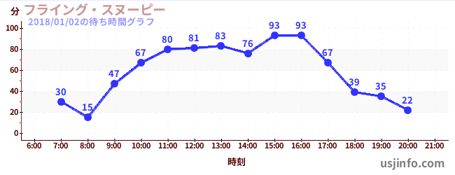 • フライング・スヌーピー$B$N(B2018年01月02日の待ち時間