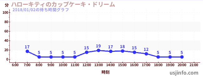 • ハローキティのカップケーキ・ドリーム$B$N(B2018年01月02日の待ち時間