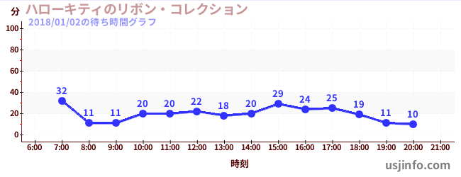 • ハローキティのリボン・コレクション$B$N(B2018年01月02日の待ち時間