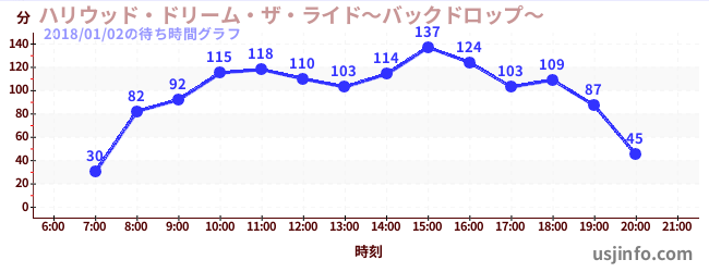• ハリウッド・ドリーム・ザ・ライド〜バックドロップ〜$B$N(B2018年01月02日の待ち時間