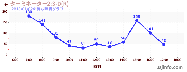 • ターミネーター2:3-D(R)$B$N(B2018年01月02日の待ち時間