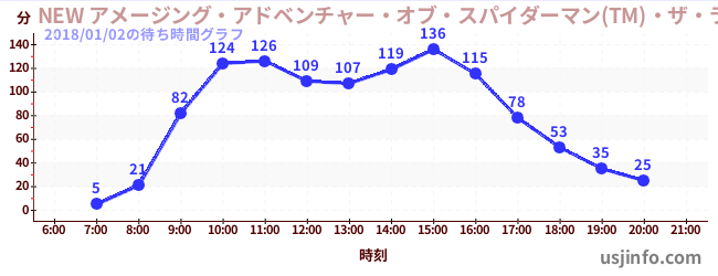 • NEW アメージング・アドベンチャー・オブ・スパイダーマン(TM)・ザ・ライド 4K3D$B$N(B2018年01月02日の待ち時間