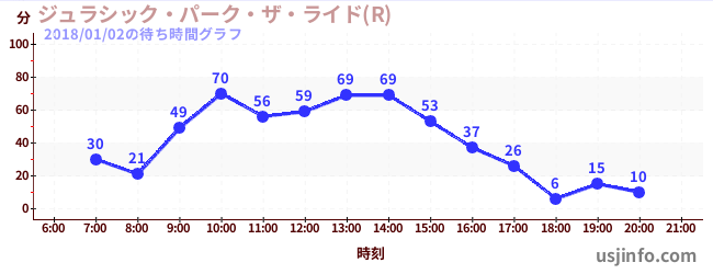 • ジュラシック・パーク・ザ・ライド(R)$B$N(B2018年01月02日の待ち時間