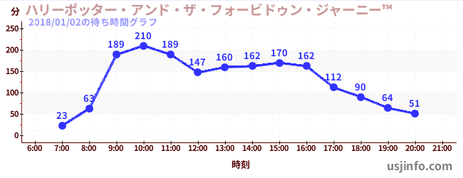 • ハリーポッター・アンド・ザ・フォービドゥン・ジャーニー™$B$N(B2018年01月02日の待ち時間