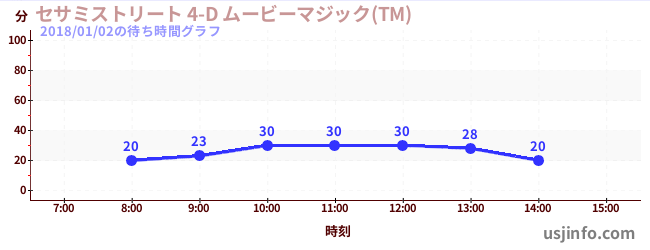 • セサミストリート 4-D ムービーマジック(TM)$B$N(B2018年01月02日の待ち時間