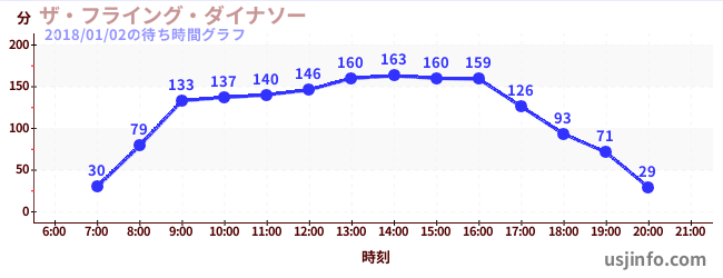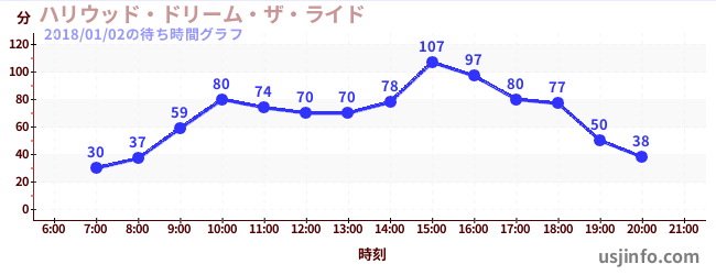 • ハリウッド・ドリーム・ザ・ライド$B$N(B2018年01月02日の待ち時間
